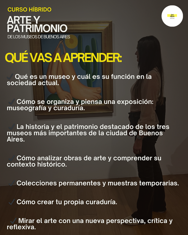 Después de muchas visitas guiadas y cursos donde noté cuánto desconocemos el patrimonio de nuestros museos, diseñé este curso pensado para que explores a fondo las obras más importantes de Buenos Aires, entendiendo su historia, sus discursos y su valor en el presente.
