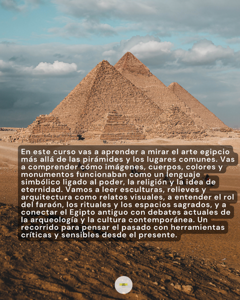 Este curso propone una mirada contemporánea sobre el arte del Antiguo Egipto, pensándolo no como un conjunto de imágenes lejanas o misteriosas, sino como un sistema visual complejo, cargado de sentido simbólico, político y religioso.